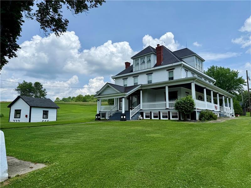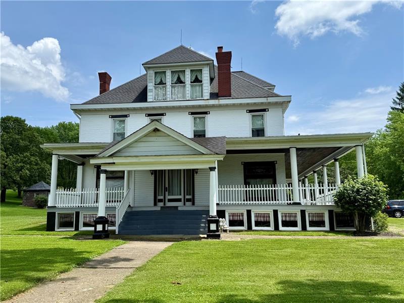 Nestled on 13 acres in a serene country setting, this remarkable home offers a captivating blend of charm and comfort. The inviting wrap-around porches beckon you to linger and savor the tranquility. The spacious first floor features a large, eat-in kitchen with ample counter space and storage for the family cook. The formal sitting room boasts high ceilings, abundant natural light, a cozy fireplace, and eye-catching stained glass windows. Adjacent to the sitting room is a snug family room, perfect for intimate gatherings. A game room, spacious enough for a pool table and entertaining guests, follows. The first floor also includes laundry facilities and a half bath. Ascend the beautiful staircase of all original wood to discover five generously sized bedrooms, each with high ceilings and a full bath. The attic, a blank canvas with floor-to-ceiling windows and exceptionally high ceilings, offers endless possibilities for customization. This property has the potential to be an ideal bed-and-breakfast, a charming wedding venue, or a welcoming family home.